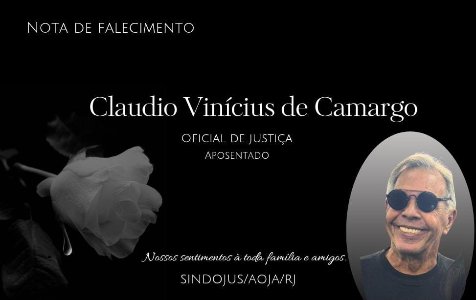É com pesar que comunicamos o falecimento do Oficial de Justiça Aposentado CLAUDIO VINICIUS DE CAMARGO.